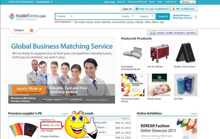 our company name appeared once again on the main page of Korea International